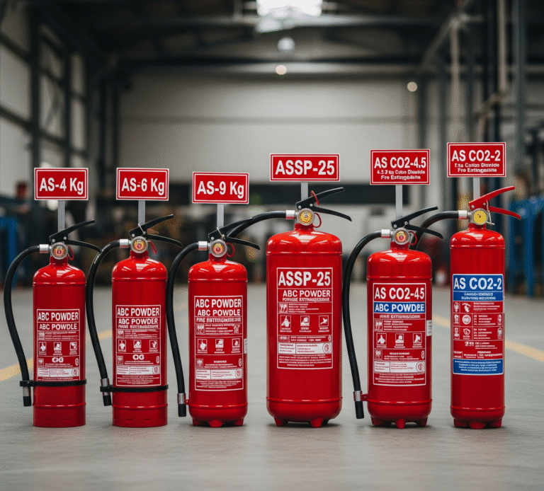 We offer ABC Dry Powder, CO₂, Clean Agent, Automatic Modular, and Trolley-type extinguishers ranging from 1 Kg to 25 Kg capacity for residential, commercial, and industrial use.